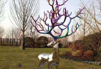 不銹鋼鏡面大型彩繪梅花鹿雕塑