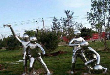 • 學校里一座新穎而富有活力的不銹鋼打籃球雕塑