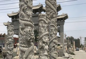 仿古石雕龍柱雕塑,為廣場增添古典魅力