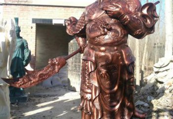 玻璃鋼仿銅景觀關公雕塑,大型戶外景區裝飾