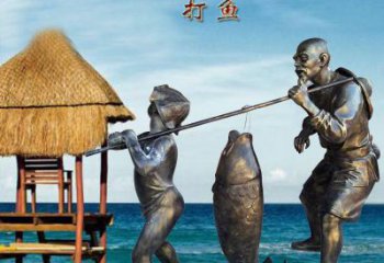 古典傳統——傅抱石孫打魚銅雕擺件