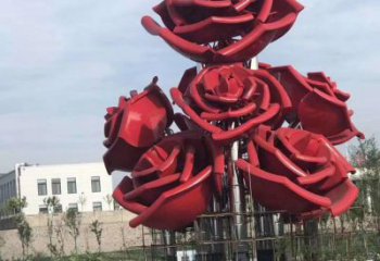 紅色玫瑰不銹鋼創意雕塑——美化廣場,增添驚喜