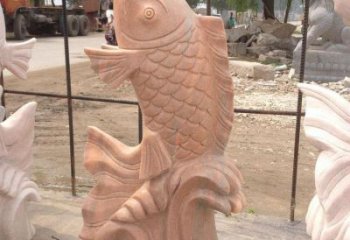 紅色晚霞,浪漫水景——精美石雕噴泉鯉魚