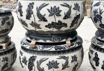 精美大理石浮雕鯉魚荷花舊庭院圓形水缸