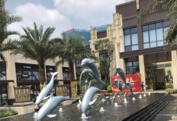 不銹鋼海豚雕塑,為戶外游泳添彩