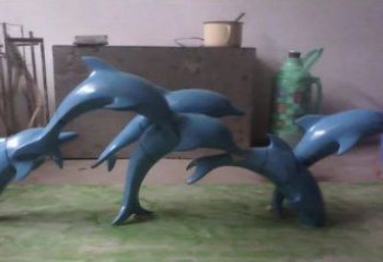 不銹鋼藍(lán)色海豚雕塑,點亮公園靜謐之美