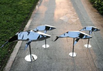 精美不銹鋼海豚雕塑,為您的戶外廣場增添水景鏡面美感