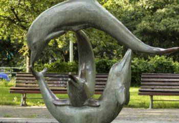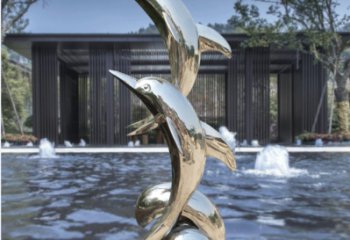 不銹鋼海豚園林水景裝飾戲水雕塑