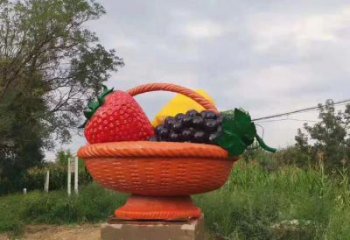 新款玻璃鋼彩繪大型水果籃采摘農(nóng)場戶外小品擺件