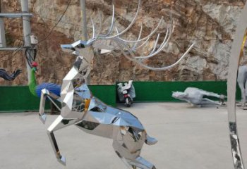 不銹鋼幾何抽象梅花鹿雕塑