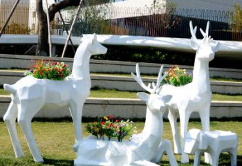 不銹鋼抽象動物雕塑——梅花鹿,為戶外草坪增添幾何美感