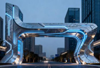 未來之樞 —— 不銹鋼科技感景觀雕塑大門?城市智創紀元地標