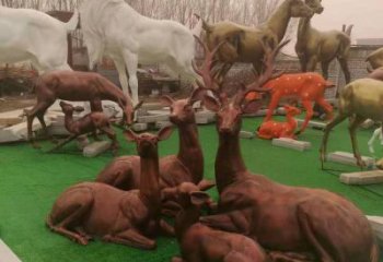 玻璃鋼仿銅梅花鹿小品售樓部裝飾品