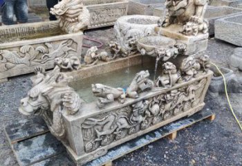 晚霞紅蓮花石雕魚缸雕塑
