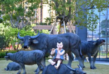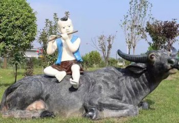 玻璃鋼仿真動物牧童騎水牛雕塑擺件,是一種以玻璃鋼為基材,仿真動物為主題,牧童騎水牛為內容的雕塑擺件,可以用于園林景觀的裝飾和布置,也可以作為家居裝飾品。
