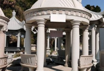 在平面和立體兩個方面對石雕亭子進行雕鑿和刻畫,能夠使石亭子體現多重的建筑石雕打造文化亭子雕塑。同時仿古建筑長廊打造亭子雕塑,是石雕亭子既能夠突出于環境,又能溶于環境。
