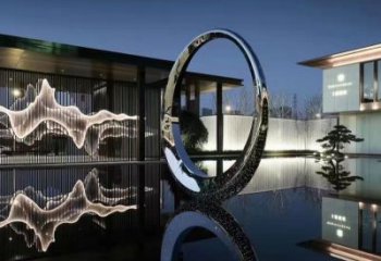 不銹鋼鏡面圓環雕塑戶外噴泉水景